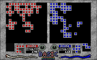 Squarez Deluxe started out as simply "Squarez" on a Commodore 64. That project was abandoned for the PC version, which was released without a publisher in 1992. After Jetpack was released, I took a month to completely rewrite Squarez and redo all the graphics. The amount of art was small enough that I did it all myself without it coming out too shabby. Squarez deluxe is very popular among the puzzle / strategy game crowd. Many people complained about missing sleep and marital problems because of their Squarez addiction. Hint: The trick to get high scores is to increase the multiplier, a lot like the multiplier on a pinball game. Also, try to move the divider as far from your territory as possible to give you more room to maneuver. |